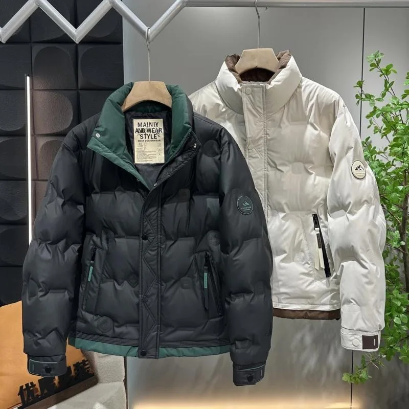 Mens Winter Japanese Style Down Coats Mens Fashion Casual Stand Collar White Duck Down Jacket Thicken Warm Windproof Ski Outwear