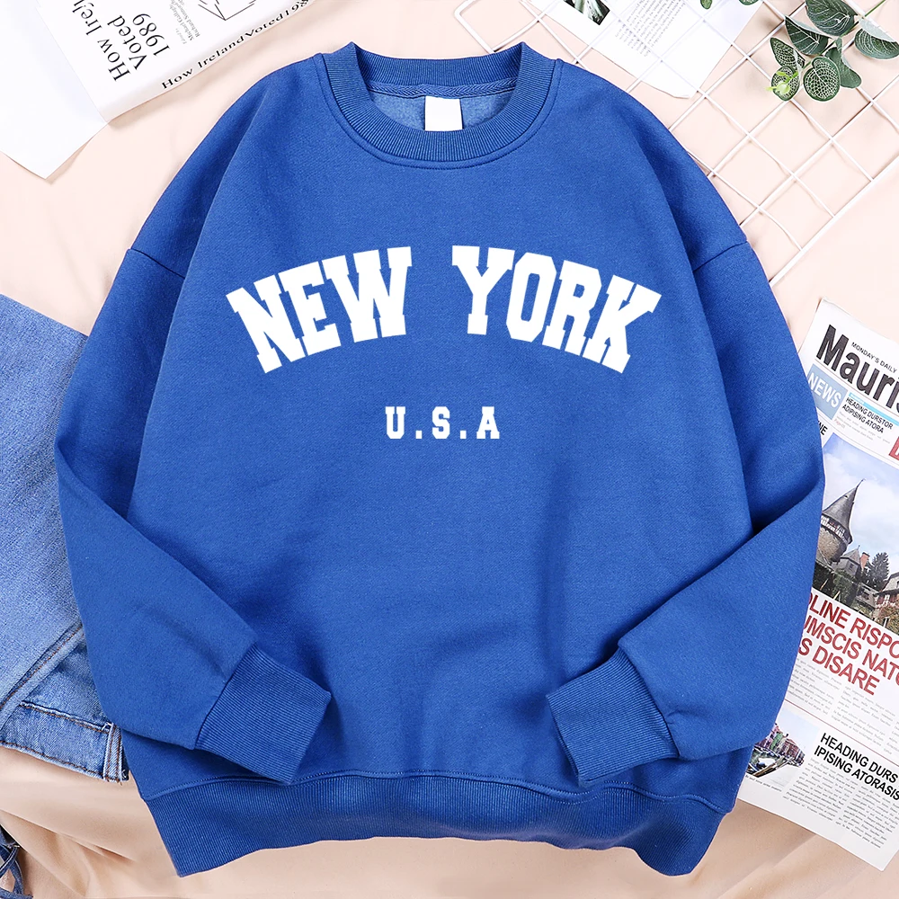 New York Usa Letter Print Streetwear Man Loose Fitness Clothes Fashion High Quality Hoodie Fleece Pullover New Sweatshirt Women